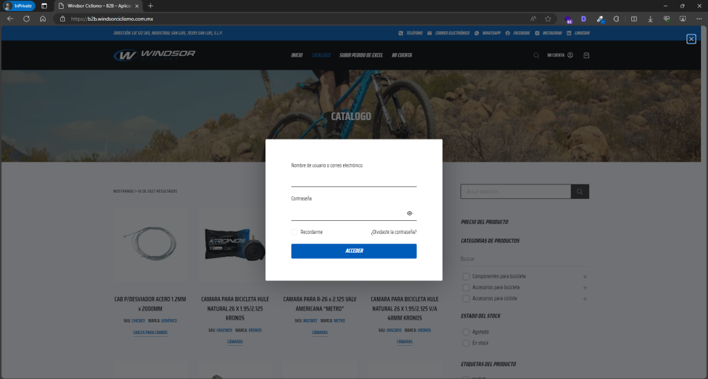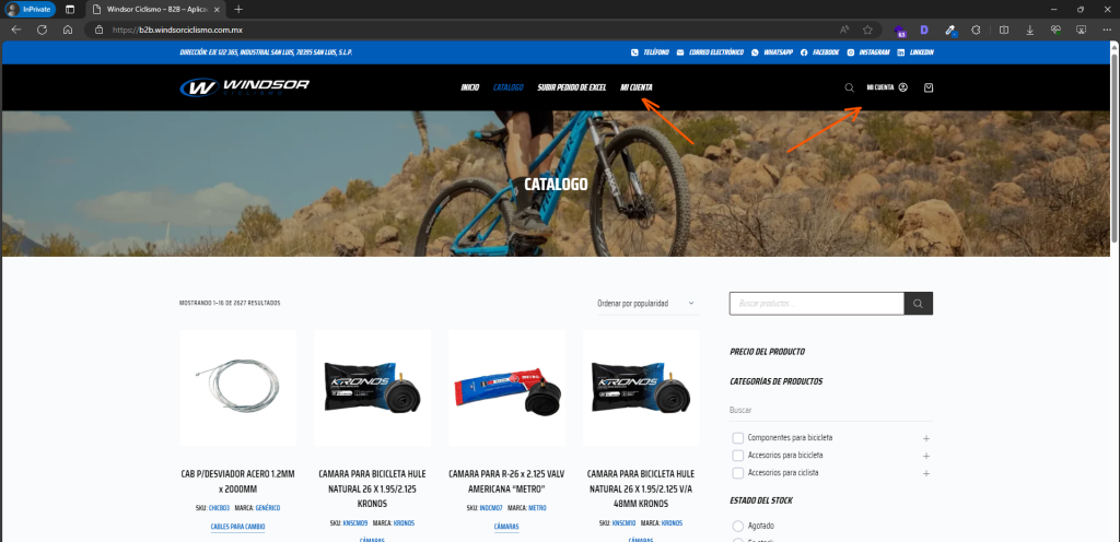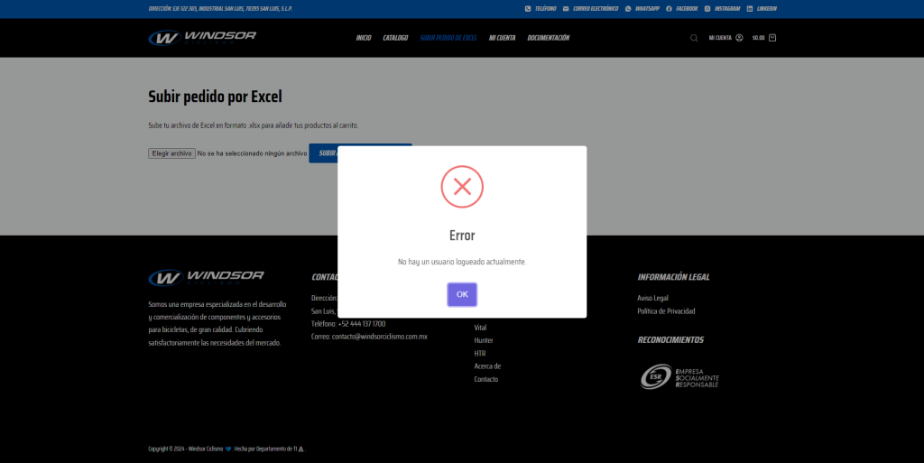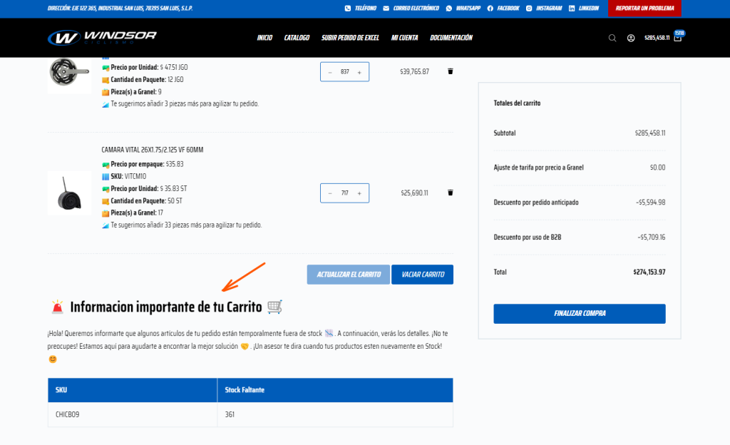 Disponibilidad de productos: La disponibilidad de los productos cargados mediante Excel se verifica en tiempo real durante el proceso de carga. Si algún producto está fuera de stock o no disponible, se informará al usuario mediante una notificación en la plataforma en la página de carrito en la parte inferior.