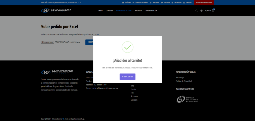• Si el archivo es válido y no contiene errores, los productos y cantidades especificados serán añadidos automáticamente al carrito de compras.